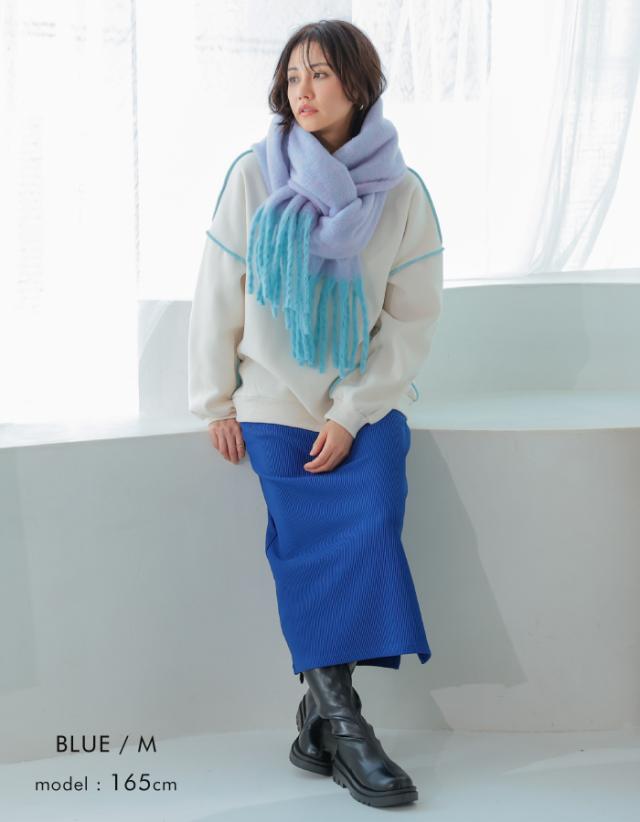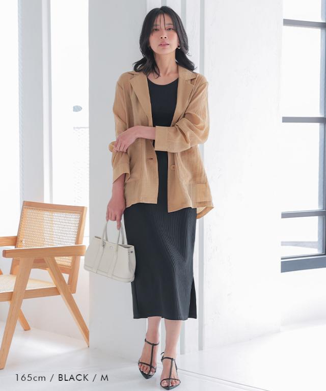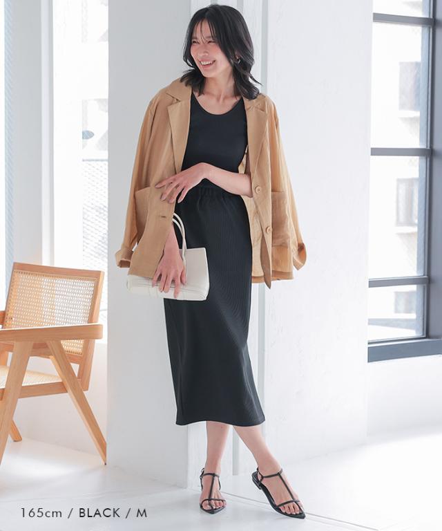 程よくボディにフィットするタイトシルエットながら縦に入ったリブでスッキリとした印象に。