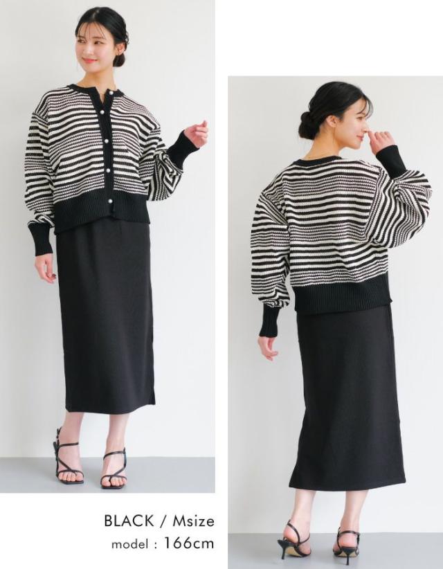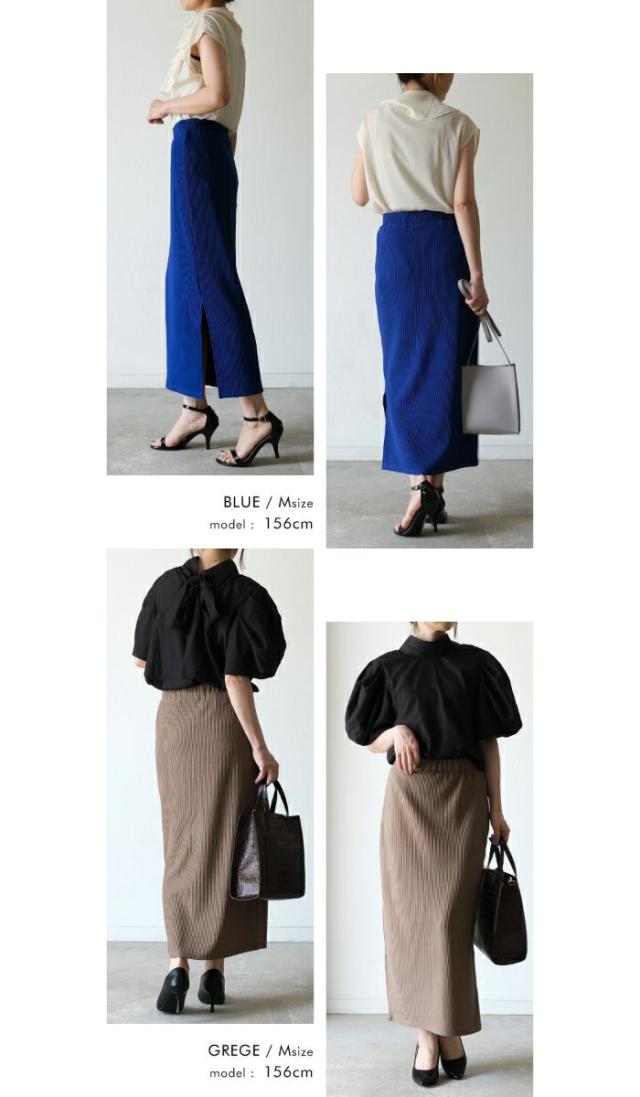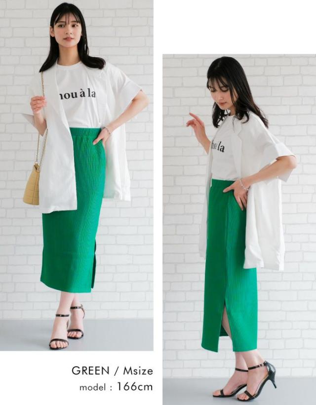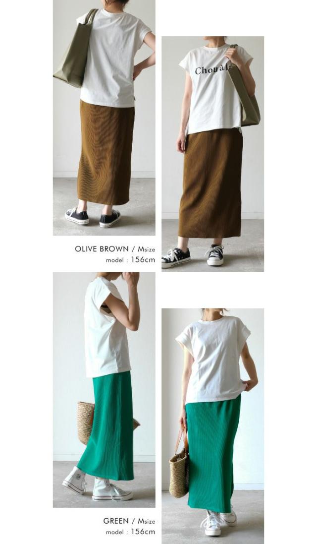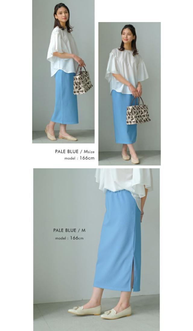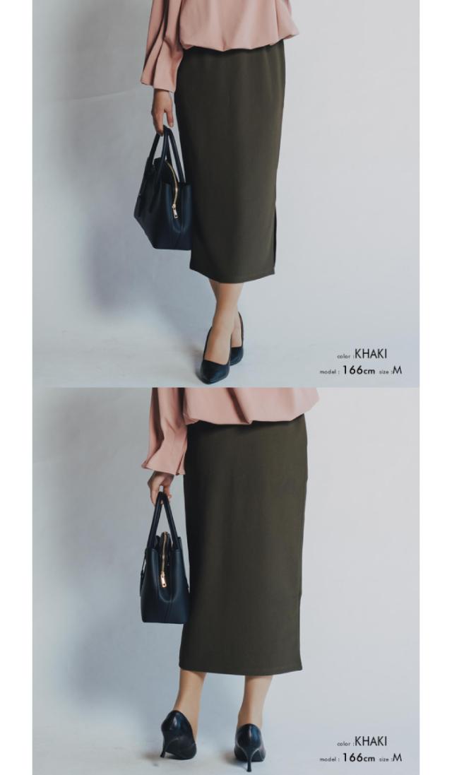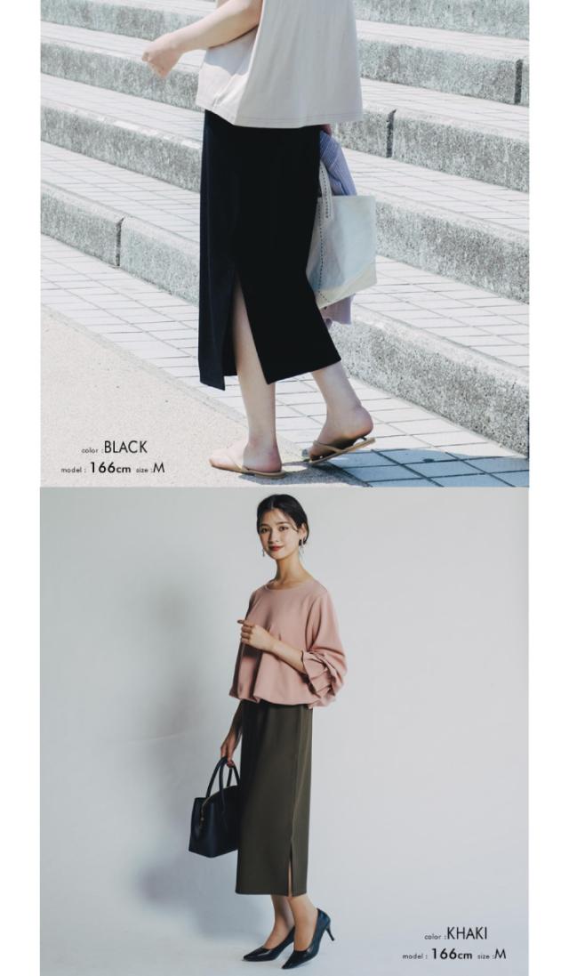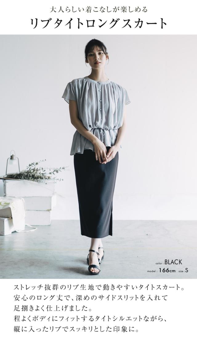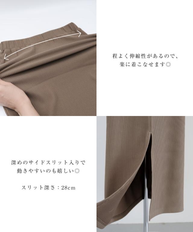 ストレッチ抜群のリブ生地で動きやすいタイトスカート。