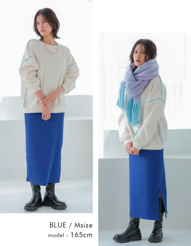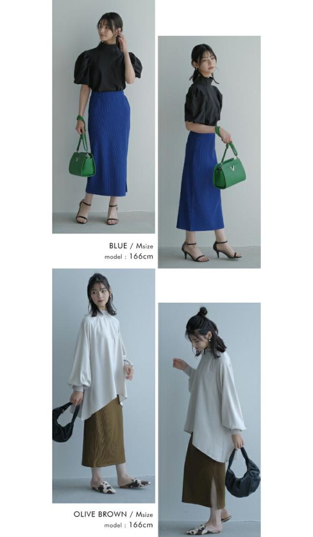大人らしい着こなしが楽しめる、リブタイトロングスカート。
