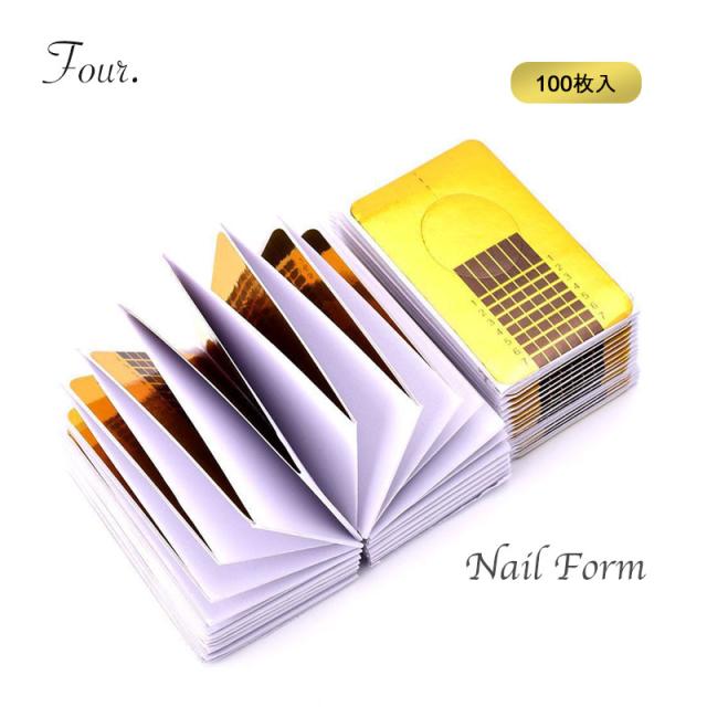 Four. ネイルフォーム 100枚セット (送料無料) ジェルネイル セルフネイル コンパクト スカルプチュア 長さ出し 使い捨て カラー カラージェルネイル ネイルジェル スカルプ ポリッシュ スカルプチャー フォーム