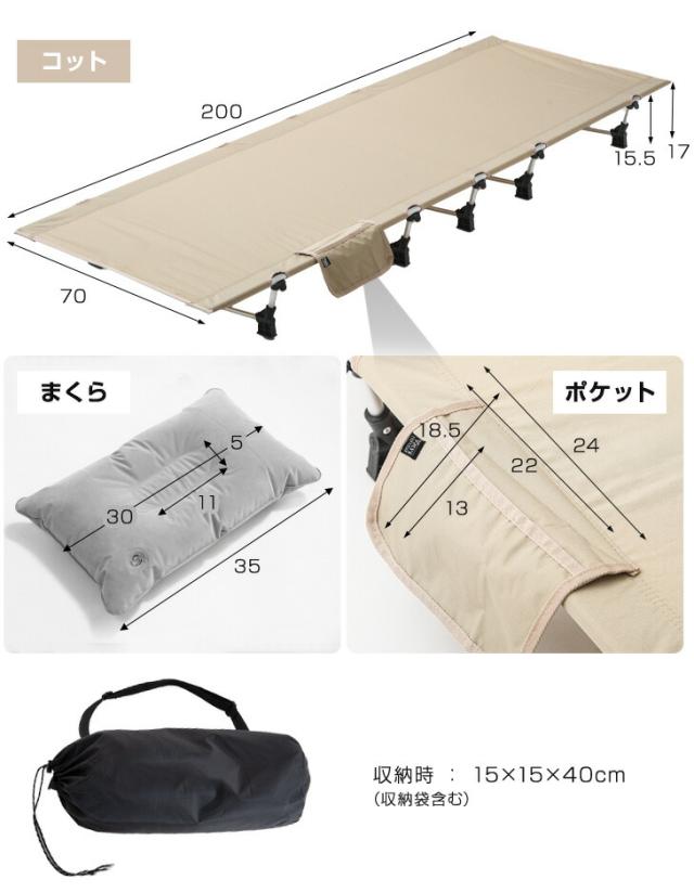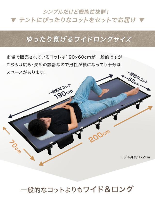 コットテント 幅70cm 収納バッグ付 アルミフレーム コンパクト 簡単組み立て ベッド コット キャンプ用品 アウトドア キャンプ レジャー 簡易ベッド
