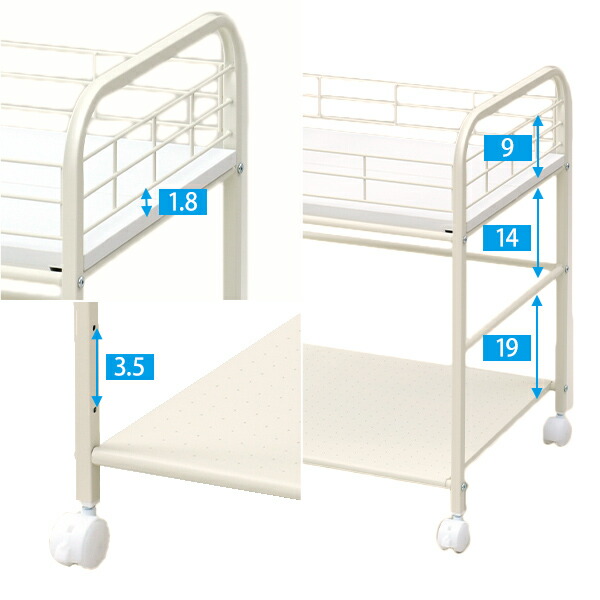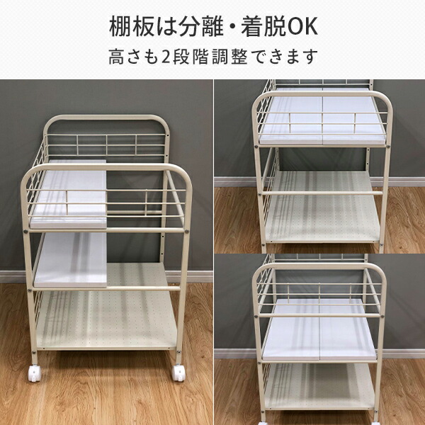 | 材質 | 本体:スチール 棚板:合成樹脂化粧繊維版(メラミン樹脂) キャスター:ポリプロピレン |