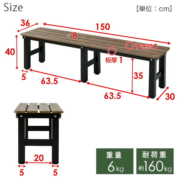 | 山善 YAMAZEN ガーデンマスター 縁台 木目調 幅150cm おしゃれ PBT-150(DBR) ダークブラウン |