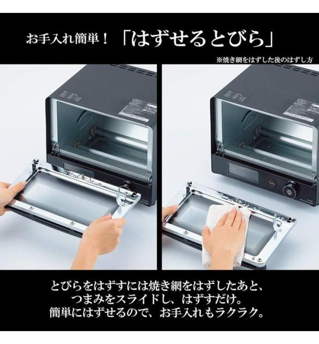 ●丸洗いOK「はずせるもち焼きネット(焼き網)」「スライド式くず受け皿」