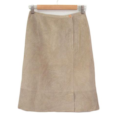 【中古】オットー OTTO スカート タイト スリット レザー 豚革 9 ベージュ レディース