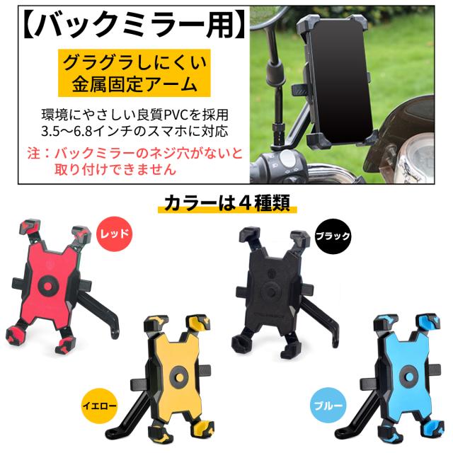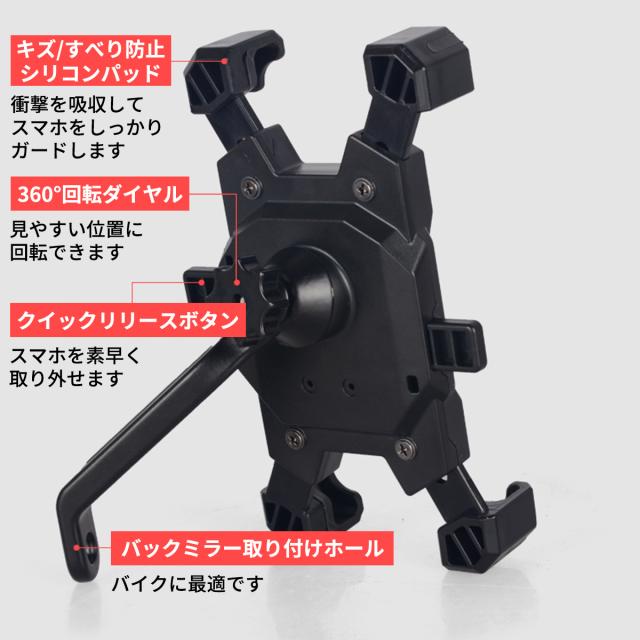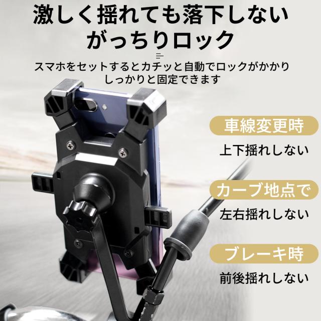 4角強力固定 落下率0 角度自由 3.5〜6.5インチ対応 ツーリング 落下防止 ブレ止め キャンプ 長距離 振動に強い