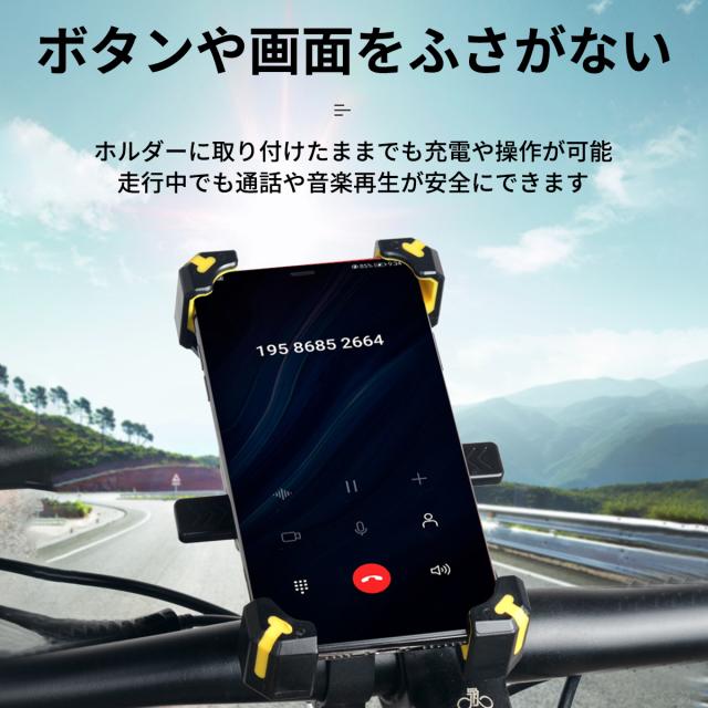 ホルダーに取り付けたままでも充電や操作が可能 走行中でも通話や音楽再生が安全にできます |