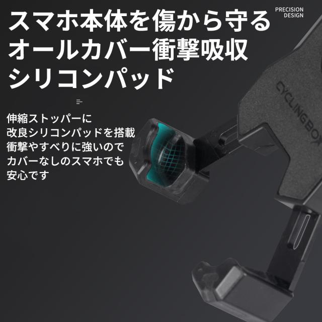 伸縮ストッパーに改良シリコンパッドを搭載 衝撃やすべりに強いのでカバーなしのスマホでも安心です |