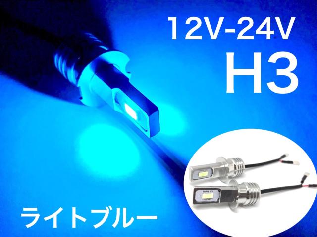 ショート設計 12V 24V 兼用 LED フォグランプ H3 左右2個セット ライトブルー 8000k-10000k 3570smd アルミ製