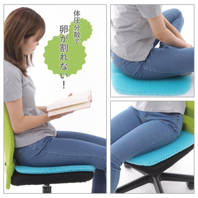 このジェルクッションは卵が割れないほどの衝撃吸収力でお尻や腰への負担を軽減