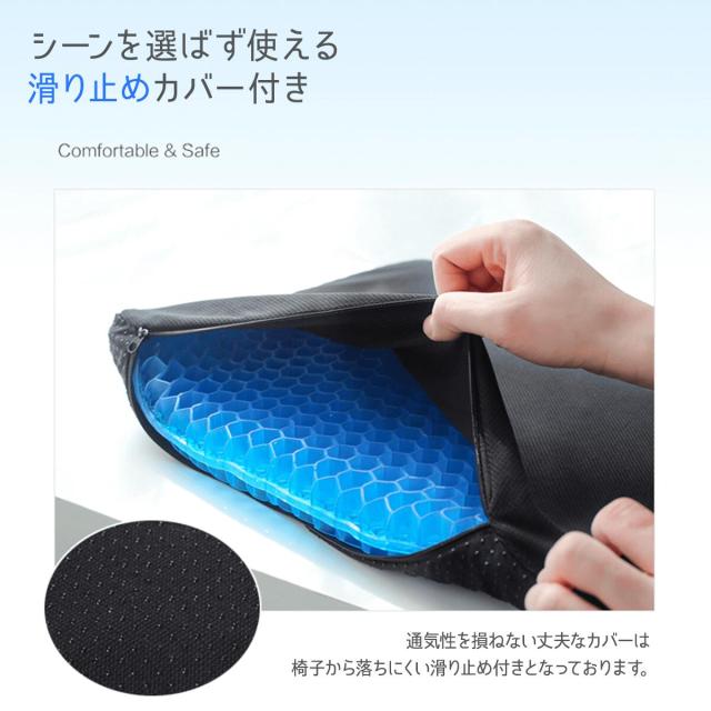 機能性も抜群で通気性の良いジェルシートは蒸れにくく滑り止め付きのカバーはズレを防止