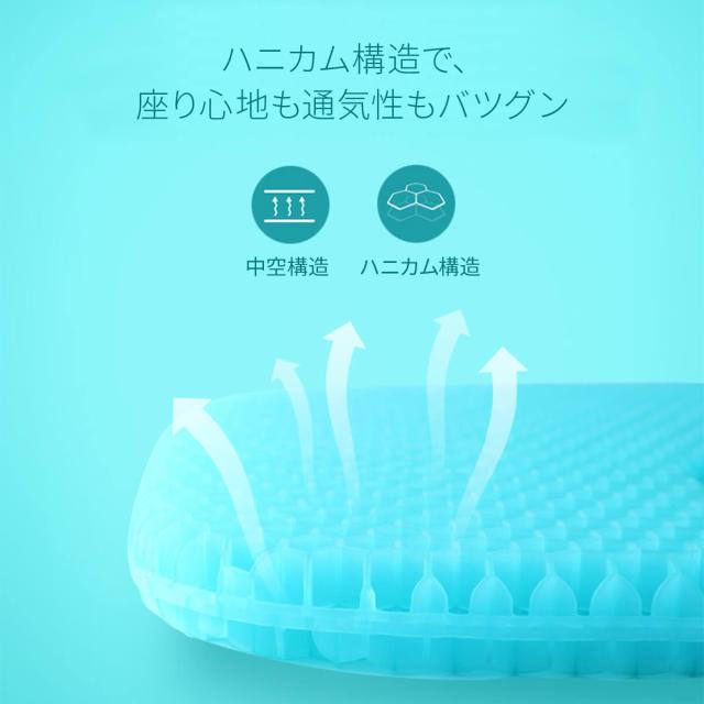 このゲルクッションは二重のハニカム構造と高弾性ゲルを採用