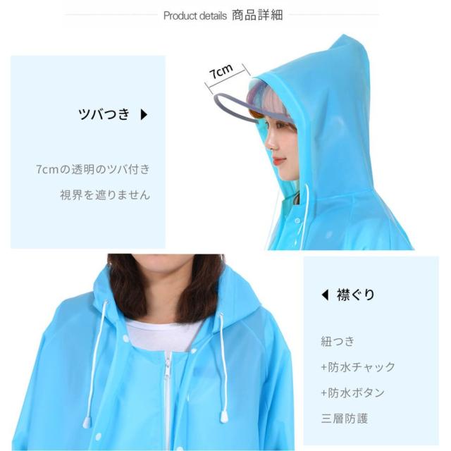 レインコート レディース 自転車 おしゃれ リュック ロング 防水 ポンチョ ママ つば 前開き 通勤 通学 長め オシャレ カッパ 合羽 雨具 雨