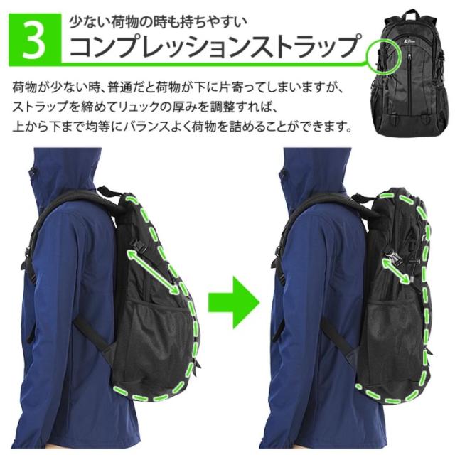 リュック メンズ レディース テフロン加工で撥水・防汚・防油 人気 リュックサック USB充電ポート付き 通勤 通学 旅行 キャンプ 防災 アウトドア 旅行バッグ 35L 大容量リュック 登山リュック アウトドア用品 キャンプ用品 バックパック【ラドウェザー LAD WEATHER】