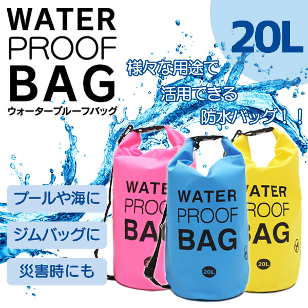 【選べるカラー】 ウォータープルーフバッグ 20L ピンク イエロー ブルー スポーツ アウトドア キャンプ グランピング 災害 防災