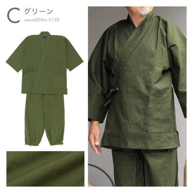 カジュアルな綿素材のメンズ作務衣です。