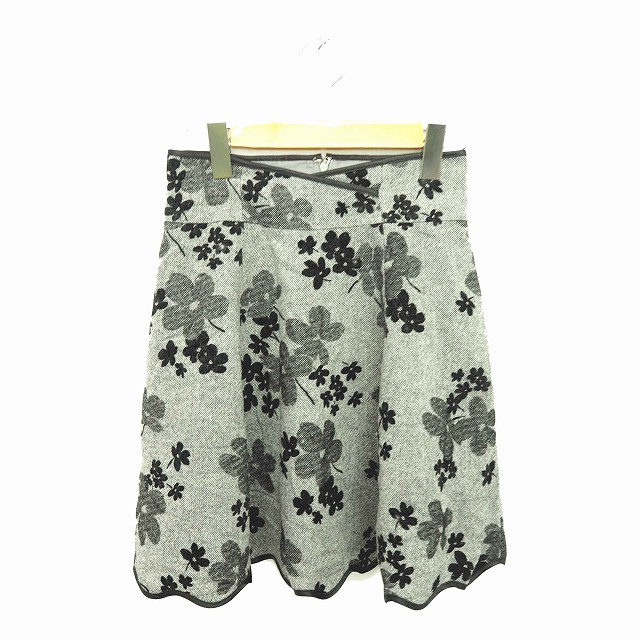 【中古】リランドチュール Rirandture スカート フレア ミニ 花柄 バックジップ ウール 1 グレー ブラック 灰 黒