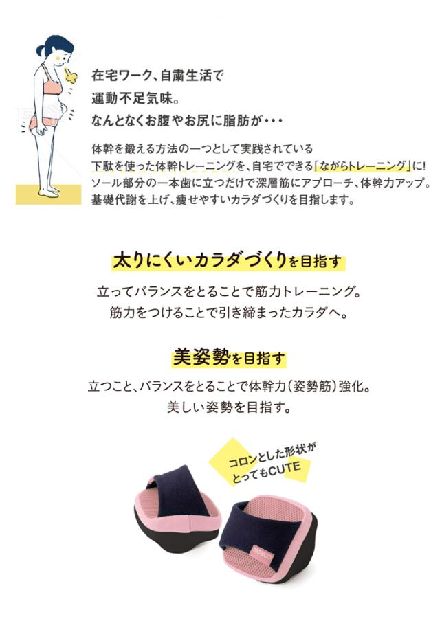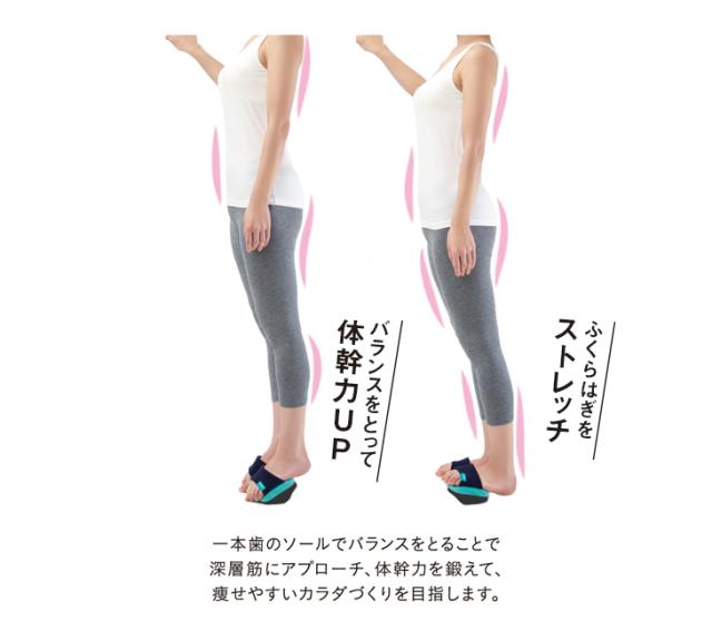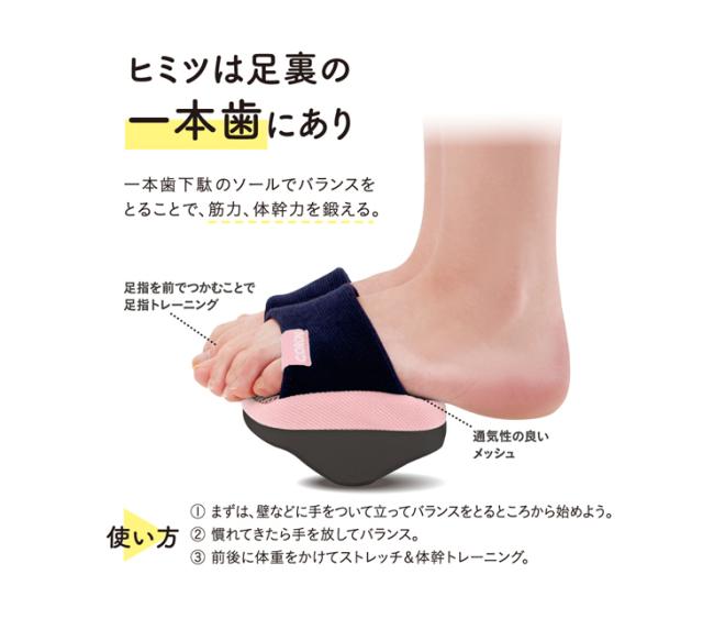 ソール部分の一本歯に立つだけで深層筋にアプローチ、体幹力アップ。