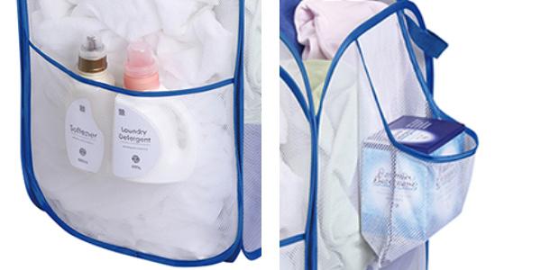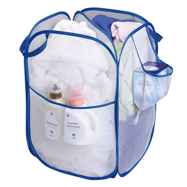 ランドリーソーター ソーター ランドリーバスケット 折りたたみ 大容量 ( 洗濯かご 洗濯カゴ ランドリー バッグ メッシュ 仕分けポケット 洗濯用品 カゴ 脱衣かご ポケット 洗剤入れ 柔軟剤 持ち運び コンパクト ポップアップ式 )