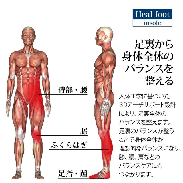 | 品名 | Heal foot インソール 人体工学に基づいた3Dアーチサポートインソール<適度な弾力> |