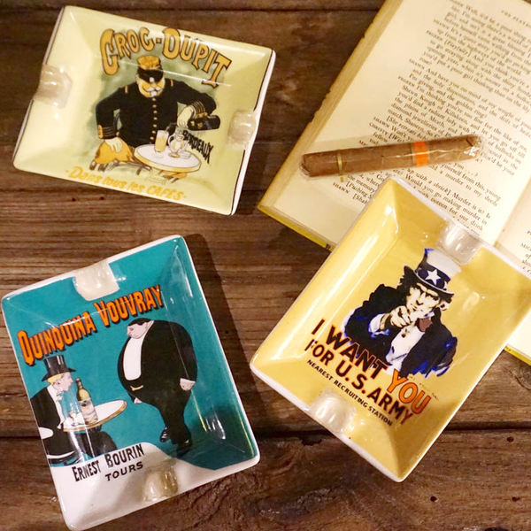 海の向こうの異国が得意とするアートが、はみ出さんとばかりに描かれた灰皿です。レトロなポスターをそのまま小さくした様な主張の強い存在感が、インテリアにアクセントを加えます。