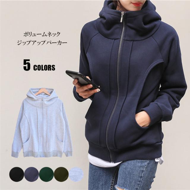 裏起毛ボリュームネックジップアップパーカー レディース ゆったり ランチ会 シルエット 女子会 通勤 通学 おしゃれ 着回し ス