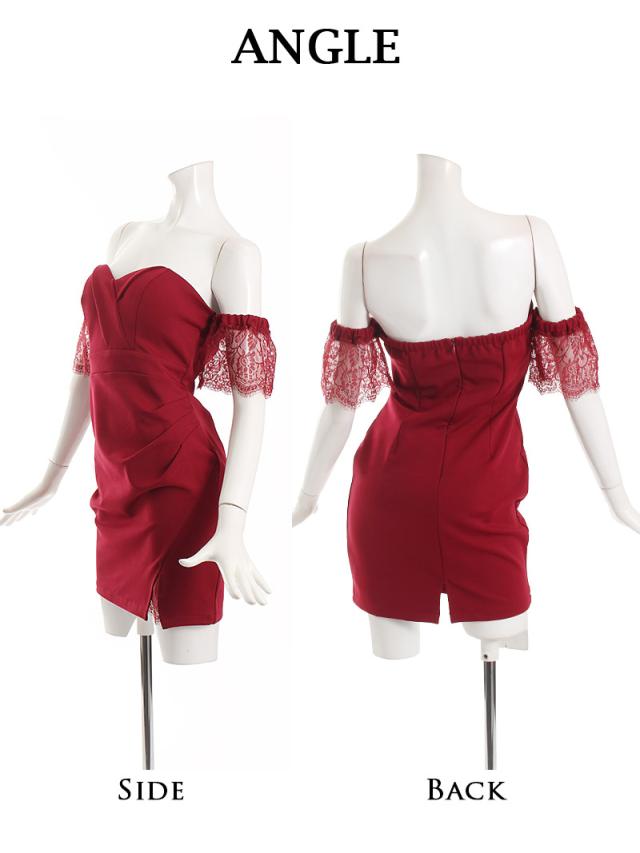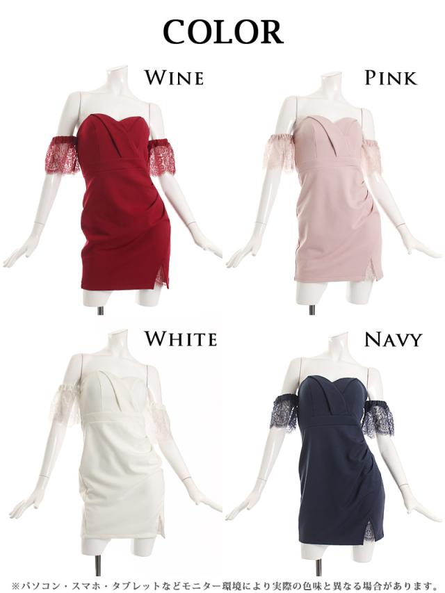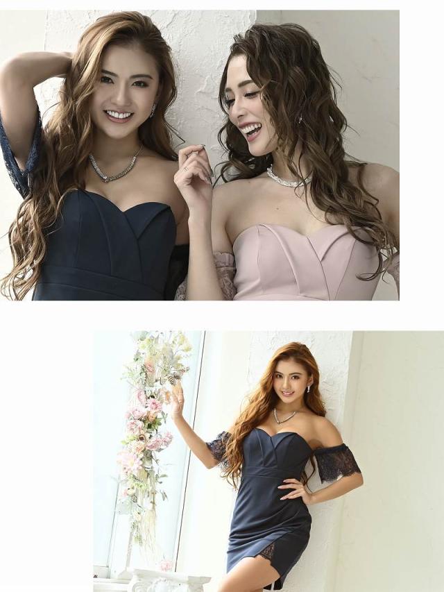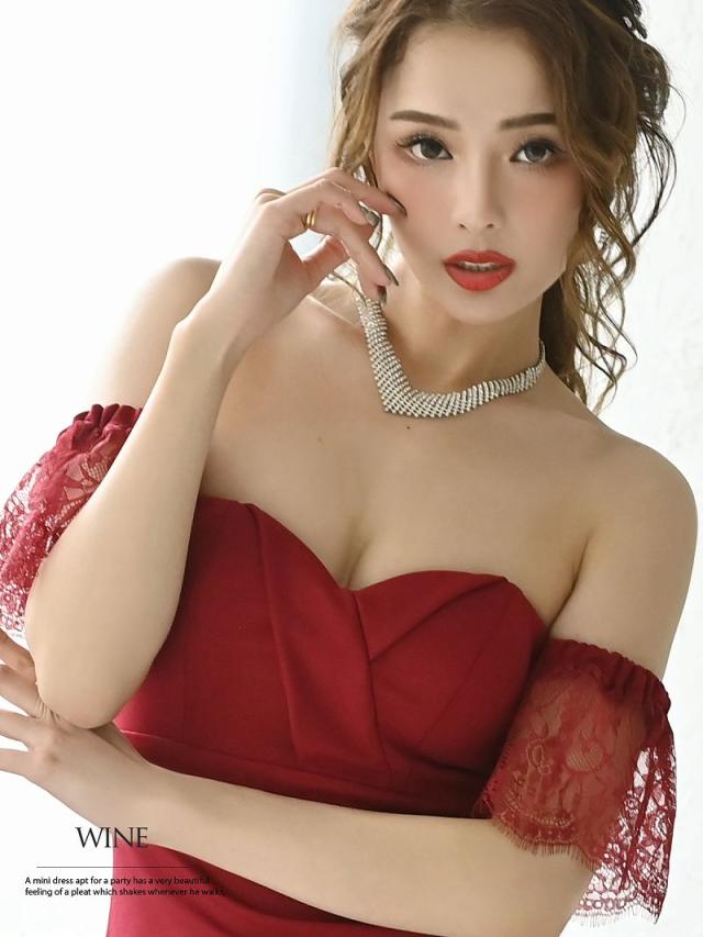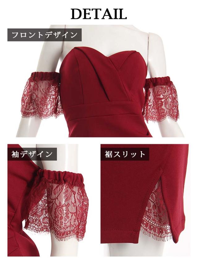 ☆レース越しの素肌がセクシーなスリット入りシアーレース袖ミニドレスはデコルテを綺麗に魅せるオフショルダーキャバクラドレス♪