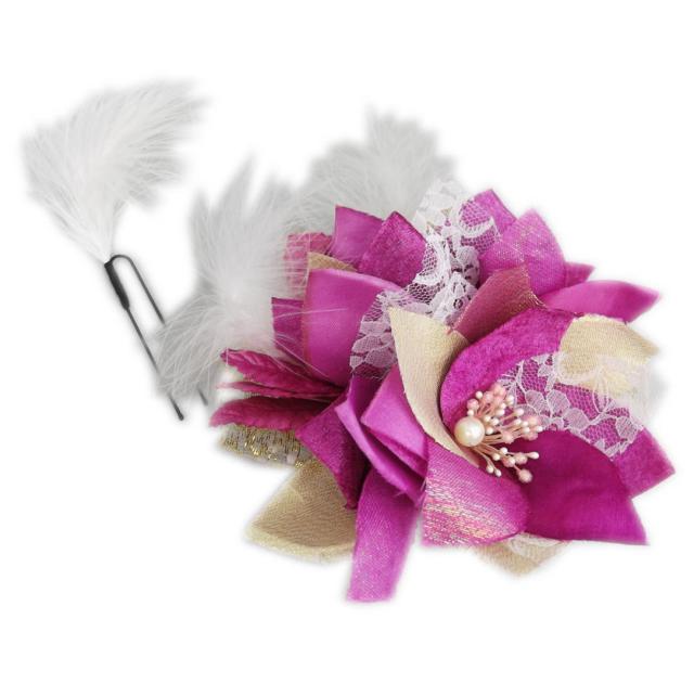髪飾り 髪かざり コサージュ 2点セット 紫&薄金可憐花レース羽根 振袖 成人式 卒業式 袴 着物