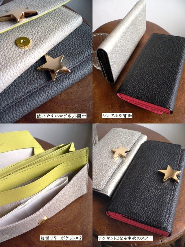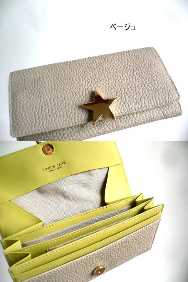 ノベルティ 1metre carre アンメートルキャレ 長財布 星スター シュリンク レザー ギャルソン ミドル BR30739 ベージュ/グレー/ブラック/ゴールド/シルバー/トープ