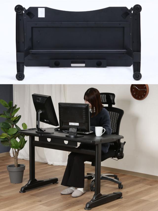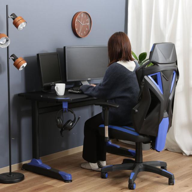 《 LH5844 在宅勤務 在宅ワーク テレワーク リモート 事務 会社 リビング 書斎 学習デスク 勉強 部屋 在宅 仕事 平机 かっこいい カッコイイ シンプル eスポーツ 天板 カーブ 幅120 奥行き 約 65 70 高さ 75 80 センチ cm ブラック ブルー アジャスター 学習机 》