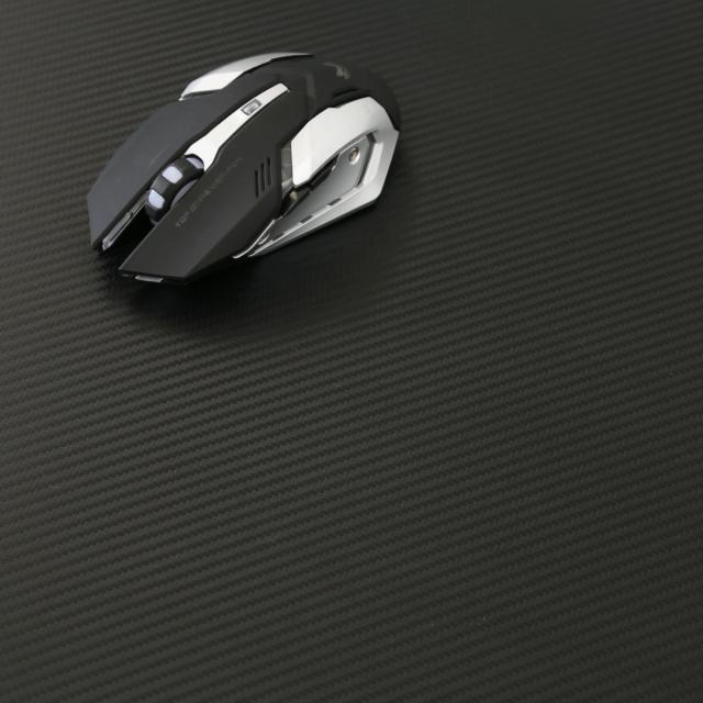 カーボン調デザインシートの天板と無骨なスチール脚、パワードスーツのような装飾やカラーリングが大人の子ども心をくすぐるデスクです。