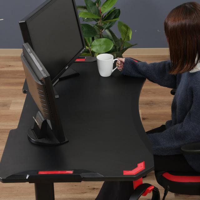 身体にフィットしやすいように、前面部分にカーブがついています。椅子を近づけて座っても圧迫感が無いので、ゲーミングデスクとしては勿論、長時間の作業や在宅ワークなどにも最適です。
