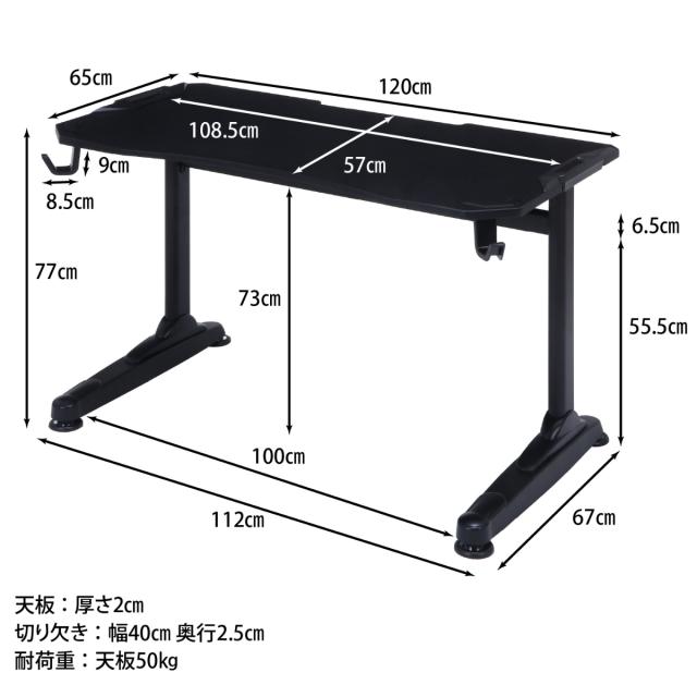 ゲーミングデスク 幅120cm ワークデスク ( オフィスデスク パソコンデスク ゲーム ヘッドフォン ホルダー フック 作業机 オフィス タップ収納 ゲーム用 勉強机 )