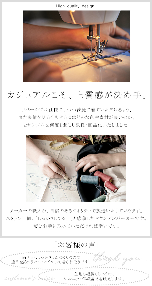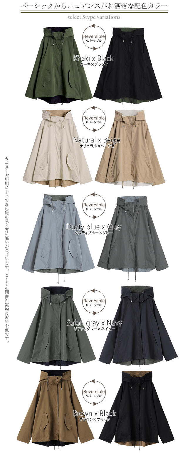 リバーシブル仕様なので気分に合わせてコーディネートが楽しめます。