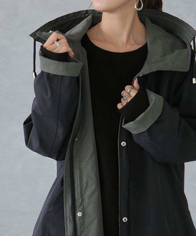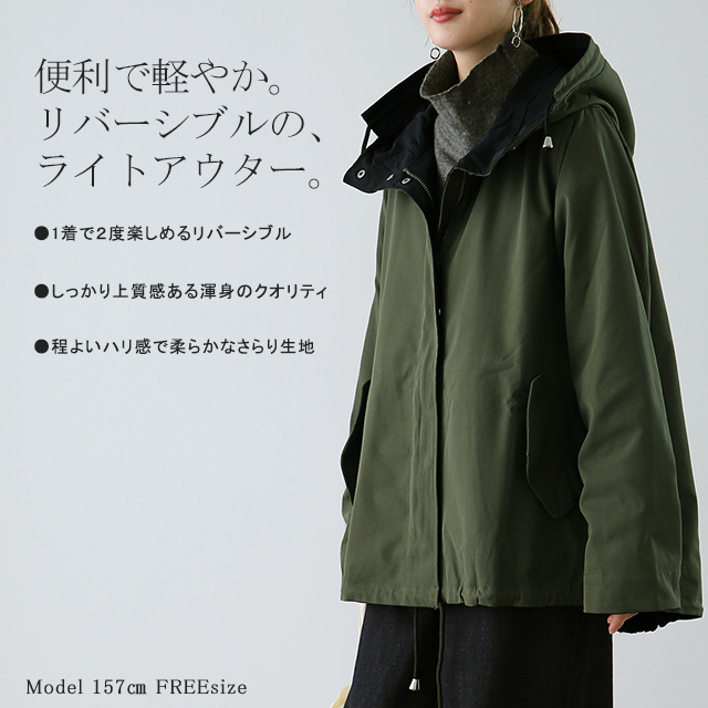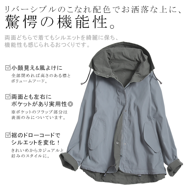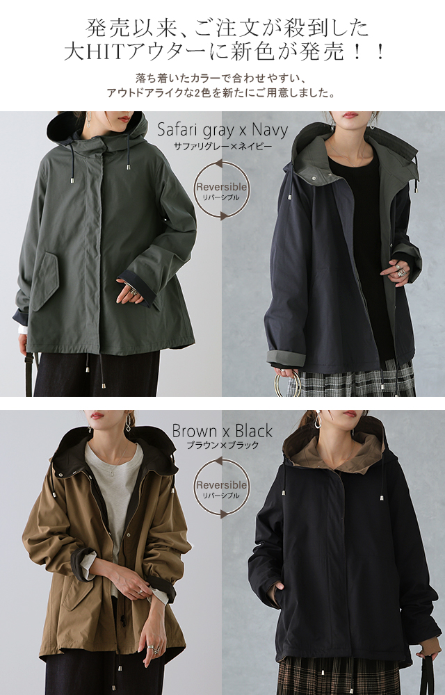 [送料無料] 賢いチョイス 2way リバーシブル マウンテンパーカー 一部1月中旬入荷 アウター レディース パーカー ジャケット ブルゾン ミリタリージャケット 長袖 アウトドア 小顔 大きいサイズ ジャンバー ミディアム ライトアウター お尻が隠れる 冬 秋 HUG.U 秋新作