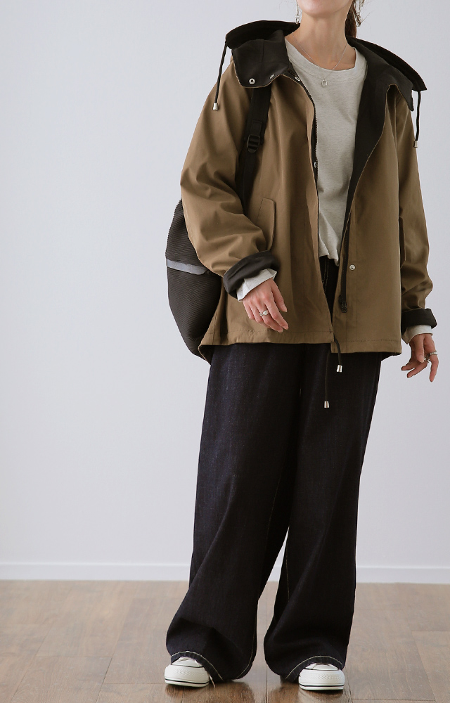 配色使いがお洒落な大人顔マウンテンパーカー。