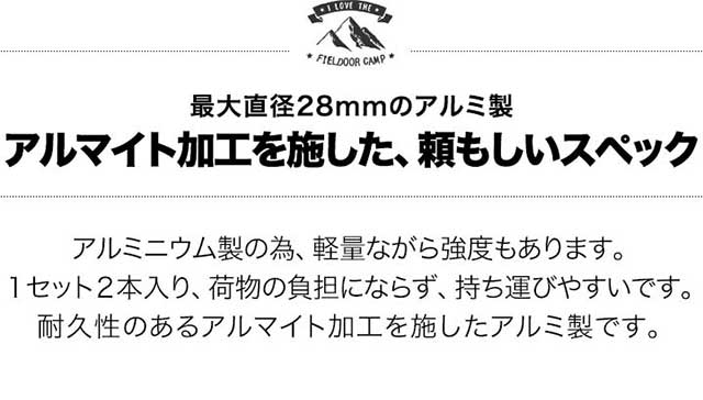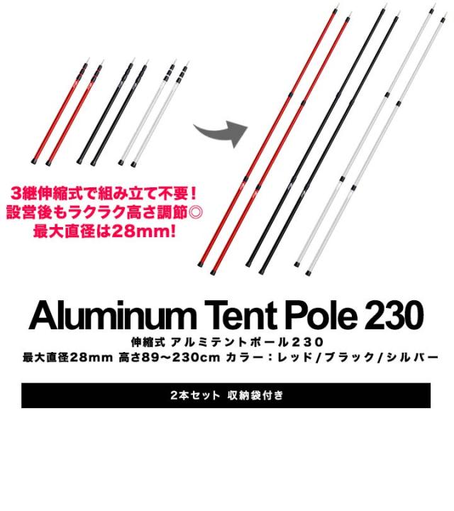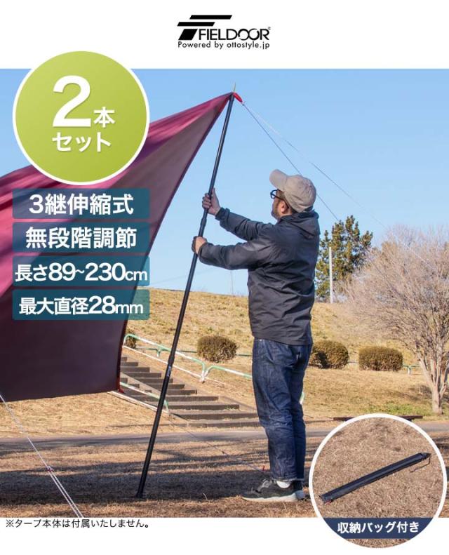 テントポール アルミ製テントポール 2本セット 直径28mm 高さ89〜230cm スライド伸縮式 無段階 高さ調整 簡単 アルミ ポール タープポール テント ワンタッチテント キャンプ タープ タープテント 伸縮 アルミテントポール 2本組 FIELDOOR 送料無料