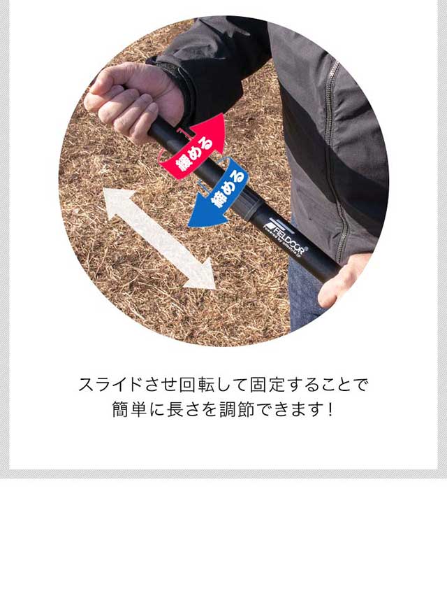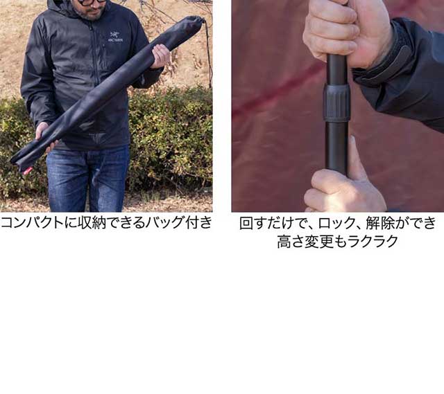 - ワンポールテントを二叉化するのに購入しました、なので長さ調節できるのがありがたいですね。