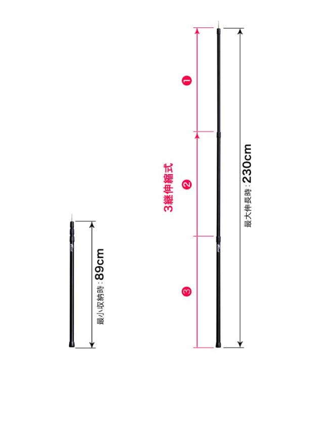 | サイズ: (約)直径2.8cm×94.5cm〜235.5cm (有効長 :(約)89cm〜230cm) |