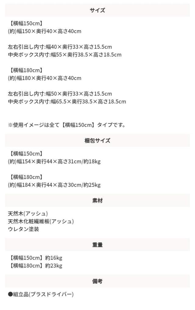 左右引出し内寸:幅40×奥行33×高さ15.5cm