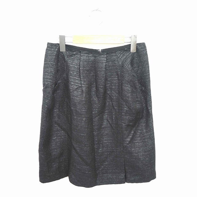 【中古】ミッシェルクラン MICHEL KLEIN スカート タイト ひざ丈 バックジップ 麻 リネン混 薄手 40 黒 ブラック