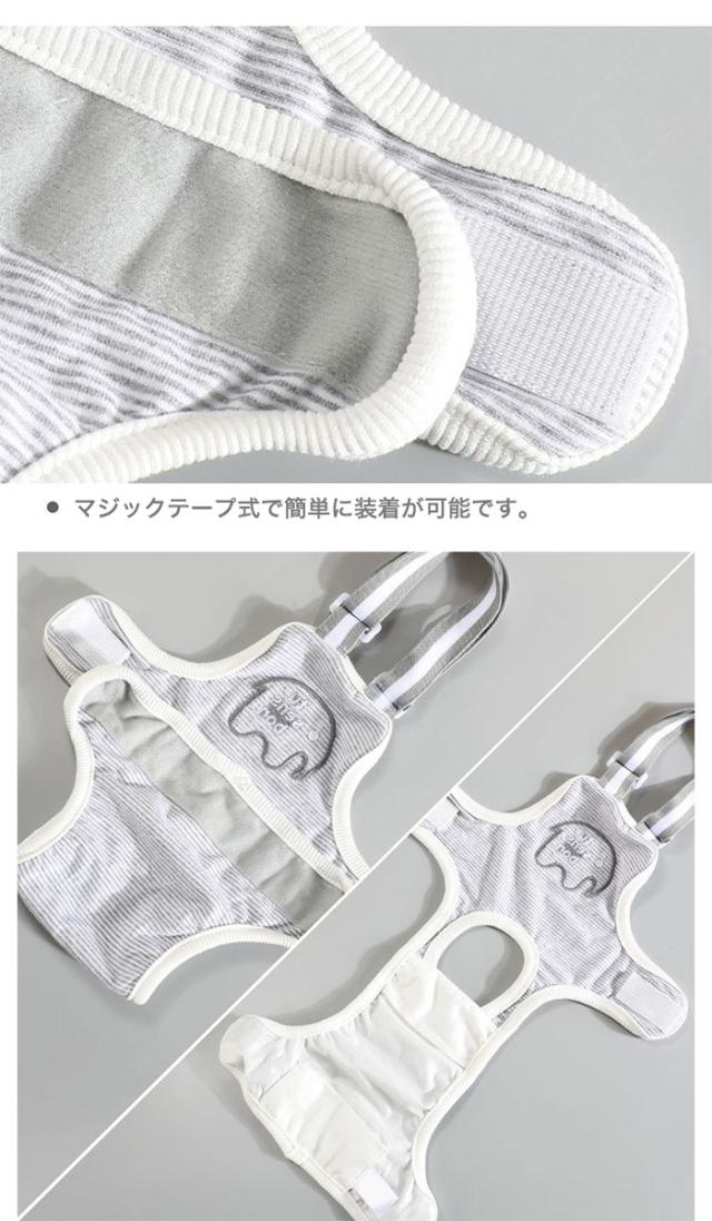 - お腹がぽっこりしてて、ちょいおデブな愛犬の為に購入 元々、洋服が嫌いなわんこなので、装着した時は違和感があるみたいでした。首に引っ掛ける事で外れ防止になってるので、少し苦しさもあるのかな〜? 様子見ながら使おうと思います。 装着は簡単です。