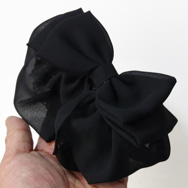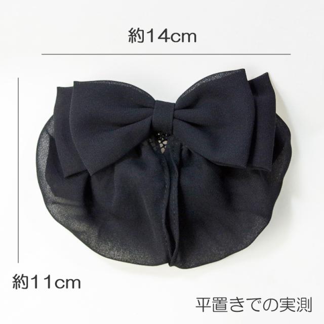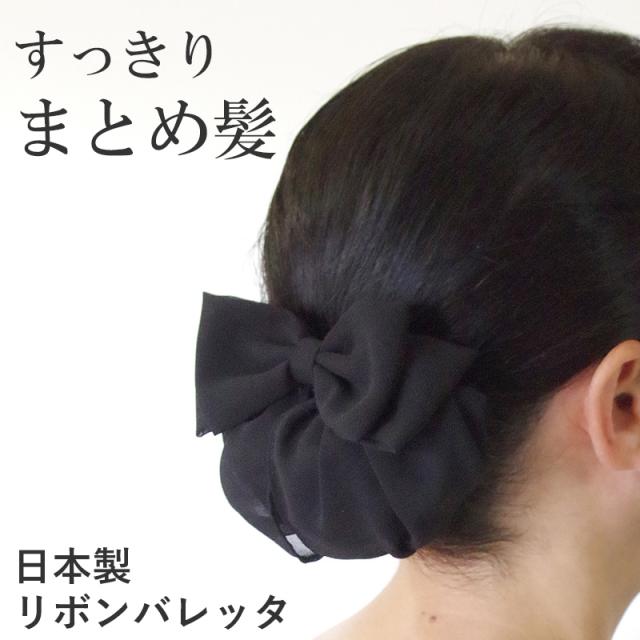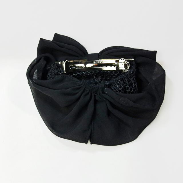 【日本製】シニヨンバレッタ お団子ネット付き リボンバレッタ ジョーゼット 黒 hrc7003 リボン 髪留め バレッタ ヘアアクセサリー シニヨンカバー シニヨンネット お団子ネット フォーマル 卒業式 入学式 入園式 まとめ髪 アップスタイル 和装 接客 面接 仕事 オフィス