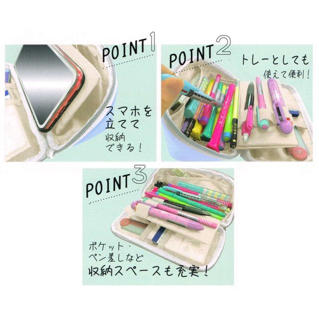 筆箱 ペンケース ボックス タイプ 女の子 向け サックスブルー 中学生 高校生 一般 シンプル スマホも収納 クラックス おしゃれ で かわいい 文房具 の ドイブングテン