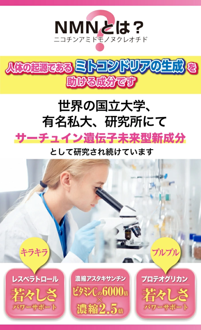 ・NMN ( ニコチンアミドモノヌクレオチド ) サプリ 未来型の美的成分!美しさにこだわりたい!若々さを目指したいあなたに!