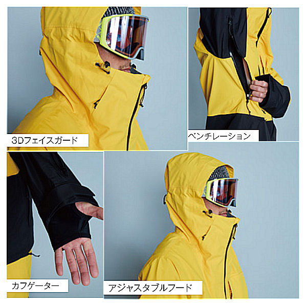 | | ・POW JACKET ・3LAYER/FULL SEAM SEALING ・3Dフェイスガード ・アンチフォグベンチレーション ・アジャスタブルフード ・ウエストゲーター ・左袖ICカードポケット ・ベンチレーション ・左胸メッシュポケット ・右胸インナーアクセスポケット ・軽量設計 |