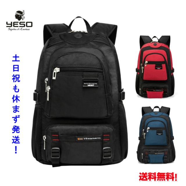 リュック メンズ YESO リュックサック 大容量 バックパックリュック レディース アウトドア バッグ 登山リュック 通学 旅行バッグ ノートPC収納 ビジネス 通勤用 リュック おしゃれ ブラック レッド ブルー ママリュック 防災 30L 9109送料無料