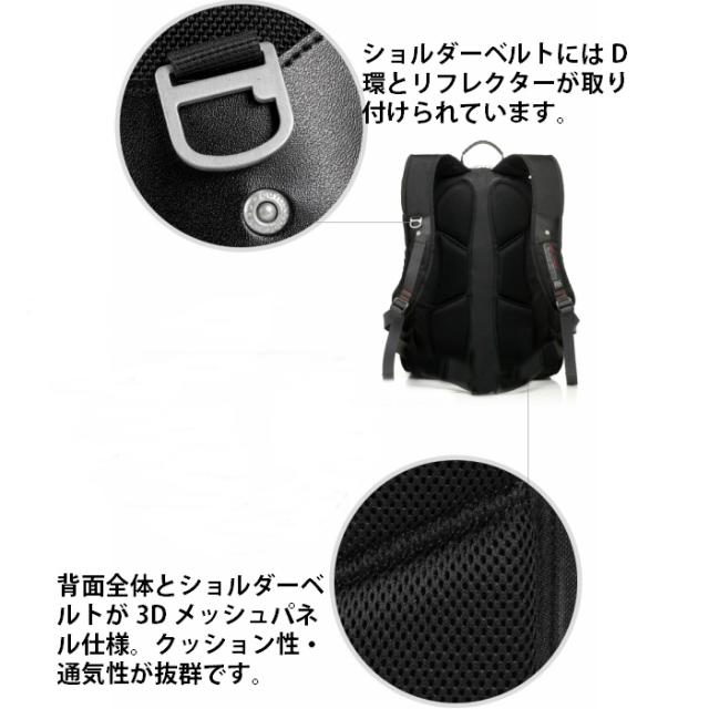 ◇背面全体とショルダーベルトが3Dメッシュパネル仕様。クッション性・通気性が抜群です。