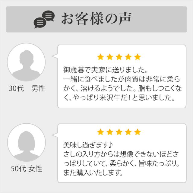 山形県が誇る黒毛和牛肉の最高峰『米沢牛』。日本三大和牛の1つに数えられているお肉です。米沢牛の特徴はなんといってもきめ細かい霜降りと脂の質の良さ。 上質の脂は、うまみ、香りがあり溶け出す温度が低く、とろけるような食感をつくりあげます。 この上質の脂ができる秘密は、置賜の気候風土と試行錯誤を繰り返し培ってきた飼育技術によるものです。最高級米沢牛のA5ランク牛肉を是非ご家庭でもお召し上がりください。
