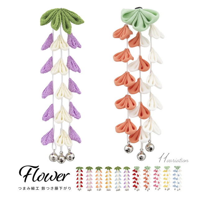 髪飾り 和装 卒業式 袴 つまみ細工 成人式 振袖 赤 ピンク 橙色 黄色 水色 藤下がり 鈴 ぶら飾り ちりめん 無地 送料無料